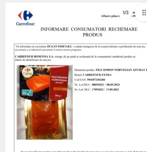 CARREFOUR ROMÂNIA S.A. retrage de pe piață și recheamă de la consumatori produsul menționat.