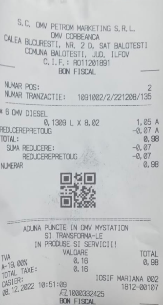 Pe contul său de Facebook, ea a postat și o serie de chitanțe cu alimentări de 1 leu la OMV