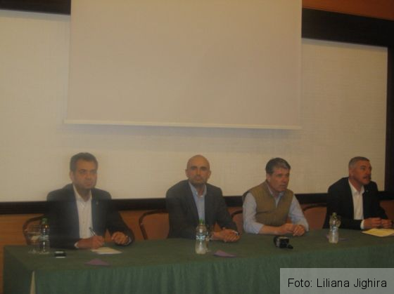 Preşedintele Consiliului Judeţean Covasna, Tamás Sándor (foto, primul din dreapta şi video 1), şi primarul municipiului Sf. Gheorghe, Antal Árpád (foto, primul din stânga), au venit astăzi la Braşov, pentru a susţine o conferinţă de presă comună cu Primăria Braşov, în care au prezentat detalii despre dorita colaborare cu Consiliul Județean și cu Primăria Brașov în vederea finalizării proiectului Aeroportului de la Ghimbav. Cei doi şefi de administraţie publică din judeţul vecin au anunţat că atât CJ Covasna, cât şi CL Sfântu-Gheorghe au aprobat cu unanimitate de voturi acordurile de principiu în vederea asocierii cu autoritățile brașovene pentru această investiţie.