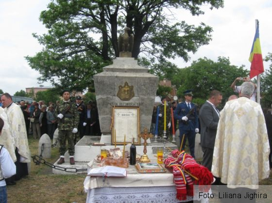 Aduse astăzi de acolo, primul popas a avut loc la Monumentul Eroilor din Bartolomeu, ridicat pe locul în care în octombrie 1916, în timpul Războiului de Reîntregire, 650 de ostaşi români au căzut pentru apărarea Braşovului şi a Ţării Bârsei, cunoscut în urma masacrului ca „Tranşeea morţii”. Slujba de pomenire a eroilor a fost oficiată de ÎPS Streza şi de Arhiepiscopul Tomisului, ÎPS Teodosie, alături de zeci de preoți ortodocși (video 1-4), fiind urmată de o depunere de coroane (video 5), prefectul Braşovului, Marian Rasaliu, dar şi ierarhii înclinându-se cu pioşenie în aminitrea eroilor. La solemnitate au fost prezenţi oficialităţi civile şi militare (din Statul Major al Apărării, dar și din Jandarmeria Română, parteneri în organizare), de la nivel judeţean şi local, reprezentanţi ai Asociaţiei Veteranilor de Război, militari din Garnizoana Brașov, numeroși brașoveni, dar și academicianul braşovean Alexandru Surdu, generalul de armată (r) Mircea Chelaru, reprezentant al conducerii Ligii Culturale pentru Unitatea Românilor de Pretutindeni, din conducerea căreia face parte, prof. dr. Liviu Pandele, cei trei fiind în prima linie a grupului de iniţiativă care a organizat manifestările naționale prilejuite de sărbătorirea Zilei Independenței de Stat a României, în cadrul Centenarului Marii Uniri.