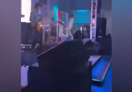 Artistul nu a stat locului o secundă, iar căzătura s-a produs în momentul în care a vrut să urce din nou pe scenă.