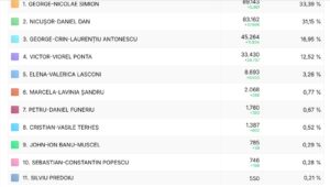 Conform datelor centralizate în secţiile de votare din Braşov, George Simion a obţinut 33,38 % din voturile braşovenilor, în timp ce Nicuşor Dan are un scor electoral de 31,15%.