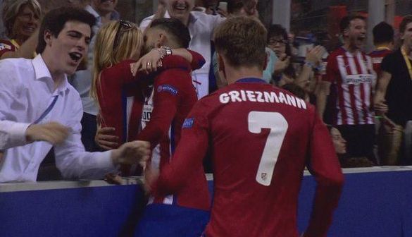 Gestul atacantului echipei Atletico Madrid, care a pupat-o cu patos pe Miss Belgia 2013, filmat și fotografiat, a devenit viral în scurt timp. Internauții susțin că este cel mai „hot” sărut din istoria fotbalului.