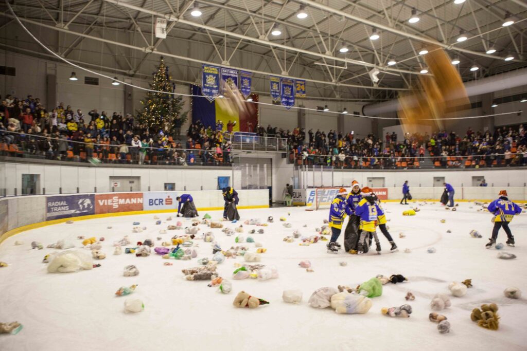 Fanii care vor sa ofere o bucurie unor copii pot dona jucării de pluş, care vor ajunge pe gheaţă în momentul în care „lupii” vor înscrie primul lor gol sau, dacă ai noştri nu vor reuşi să marcheze, la finalul partidei. Pentru ca jucăriile să nu se deterioreze, acestea ar trebui protejate în pungi.