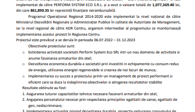 Anunț de presă finalizare proiect „ÎNFIINȚARE SECȚIE PENTRU FASONAREA ARMĂTURILOR DIN OȚEL”