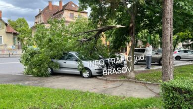 Copac căzut peste un autoturism, pe Calea București din Brașov! „Am fost solicitați să intervenim în municipiul Brașov, în urma…