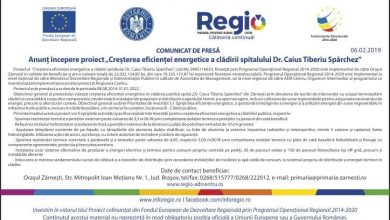 Anunț începere proiect „Creșterea eficienței energetice a clădirii spitalului Dr. Caius Tiberiu Spârchez”