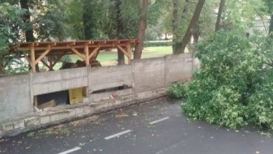 Așa-zisa vijeliie din această după-amiază a doborât 50% dintr-un copac aflat în curtea Spitalului Mârzescu, blocând micuța...