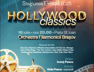 Începând cu ora 20:00, publicul este invitat la concertul simfonic „Hollywood Classics”, un omagiu adus coloanelor sonore care au scris istorie în lumea filmului. Orchestra Filarmonicii Brașov va fi dirijată de Ionuț Pascu, iar pe scenă va urca, în calitate de solistă, soprana Aida Pascu.