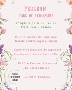 ☀ Vă așteptăm cu drag duminică, 27 Aprilie, în intervalul 12:00 – 20:00, alături de noi în Piața Unirii”, a transmis Primăria Râșnov.